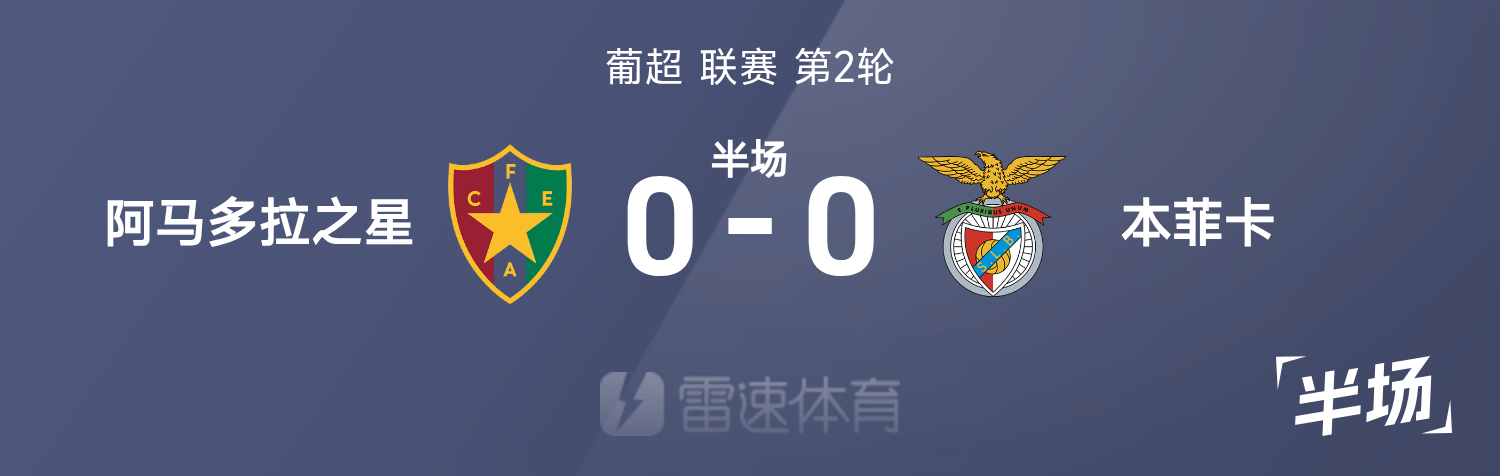 08月17日讯 25/26赛季葡超联赛第2轮,阿马多拉之星迎战本菲卡。半场战罢,双方比分暂为阿马多拉之星0-0本菲卡。